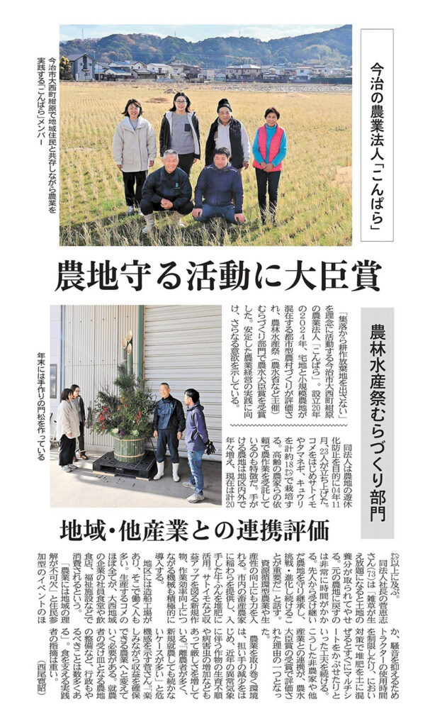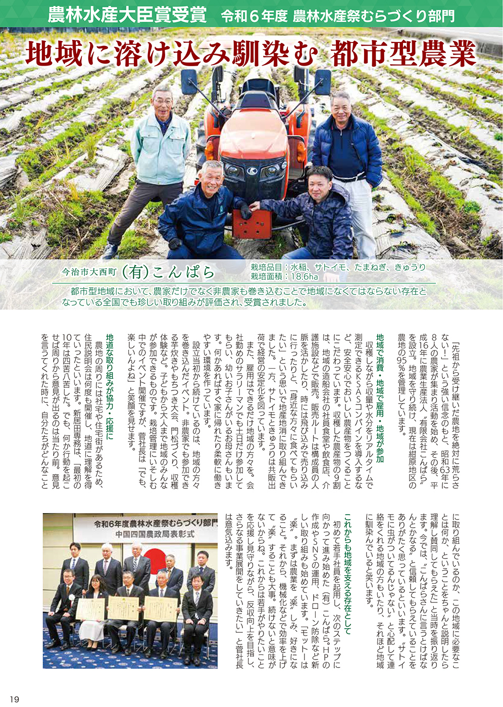 平成十六年十一月 特定農業法人「有限会社こんぱら」を設立した